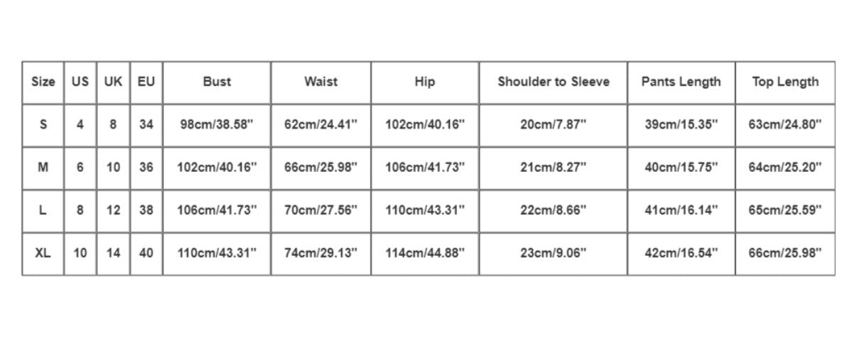 Women short and pant set. Comforatable fabric, perfect for the summer time. Runs true to size. Fabric: 95% Polyester, 5% Spandex
